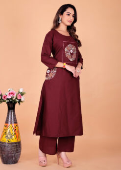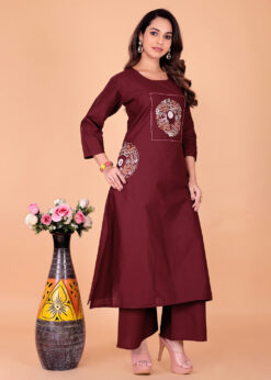 Surili Maroon Dabu Cotton Embroidered Kurta Palazzo Set for Women Traditional Ethnic and Daily Wear Set