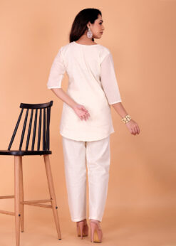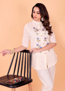 Fine embroidery work enhances the overall design while maintaining a minimal and graceful appearance. The tunic style silhouette provides a relaxed fit, allowing easy movement and a flattering fall for all body types. This kurti is ideal for office wear, daily use, casual outings, and light festive gatherings.