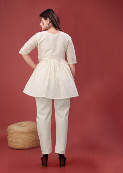 Elevate your everyday ethnic style with the Surili Off White Khadi Cotton Tunic Embroidery Kurta, designed for women who appreciate natural fabrics and timeless elegance. Crafted from premium khadi cotton, this tunic kurta offers excellent breathability, softness, and comfort, making it perfect for long hours of wear.The off white shade gives a calm and sophisticated look, while the subtle embroidery work adds a touch of traditional charm. The tunic style silhouette provides a relaxed and modern fit, making it suitable for all body types. Khadi cotton fabric is known for its airy texture and skin friendly nature, keeping you cool and comfortable throughout the day.This embroidered tunic kurta is ideal for daily wear, office wear, casual outings, and light festive occasions. It pairs beautifully with leggings, straight pants, palazzos, or denim for a fusion look. With neat stitching and refined finishing, this kurta reflects Surili’s commitment to quality craftsmanship and sustainable fashion.