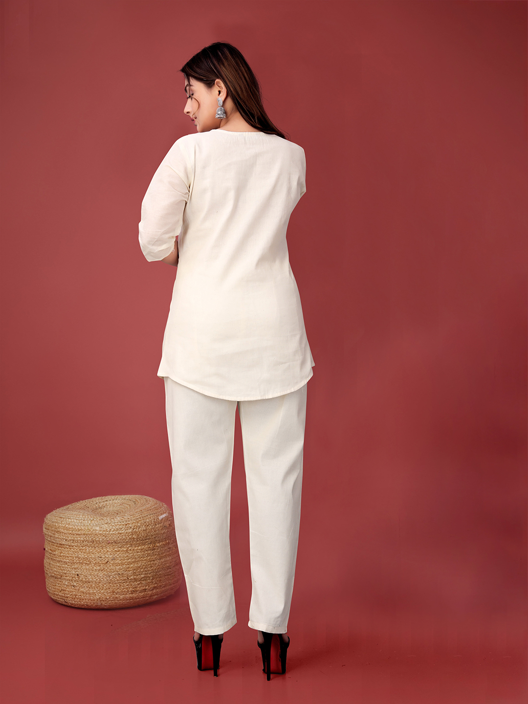 Elevate your everyday ethnic style with the Surili Off White Khadi Cotton Tunic Embroidery Kurta, designed for women who appreciate natural fabrics and timeless elegance. Crafted from premium khadi cotton, this tunic kurta offers excellent breathability, softness, and comfort, making it perfect for long hours of wear.The off white shade gives a calm and sophisticated look, while the subtle embroidery work adds a touch of traditional charm. The tunic style silhouette provides a relaxed and modern fit, making it suitable for all body types. Khadi cotton fabric is known for its airy texture and skin friendly nature, keeping you cool and comfortable throughout the day.This embroidered tunic kurta is ideal for daily wear, office wear, casual outings, and light festive occasions. It pairs beautifully with leggings, straight pants, palazzos, or denim for a fusion look. With neat stitching and refined finishing, this kurta reflects Surili’s commitment to quality craftsmanship and sustainable fashion.
