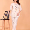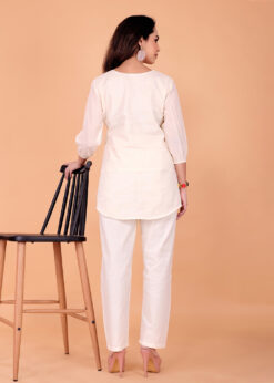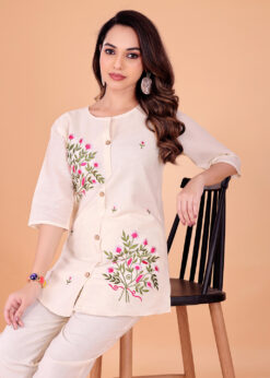 Elevate your everyday ethnic style with the Surili Off White Khadi Cotton Tunic Embroidery Kurta, designed for women who appreciate natural fabrics and timeless elegance. Crafted from khadi cotton, this tunic kurta offers excellent breathability, softness, and comfort, making it perfect for long hours of wear.The off white shade gives a calm and sophisticated look, while the subtle embroidery work adds a touch of traditional charm. The tunic style silhouette provides a relaxed and modern fit, making it suitable for all body types. Khadi cotton fabric is known for its airy texture and skin friendly nature, keeping you cool and comfortable throughout the day.This embroidered tunic kurta is ideal for daily wear, office wear, casual outings, and light festive occasions. It pairs beautifully with leggings, straight pants, palazzos, or denim for a fusion look. With neat stitching and refined finishing, this kurta reflects Surili’s commitment to quality craftsmanship and sustainable fashion.