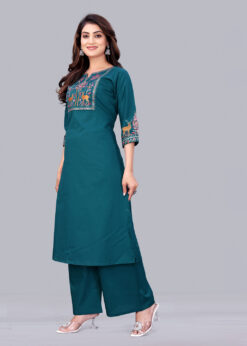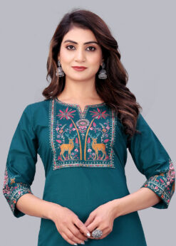 Surili Turquoise Dabu Cotton Embroidered Kurta for Women Office Wear and Festive Occasions