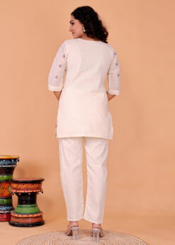 Surili Cotton Embroidery Tunic Co-Ord Set, designed for modern women who love comfort with style. Crafted from premium quality breathable cotton, this stylish co-ord set features a beautifully embroidered tunic paired with perfectly coordinated bottoms. The soft fabric ensures all-day comfort, making it ideal for daily wear, office wear, festive gatherings, or casual outings.The delicately crafted embroidery adds a graceful ethnic touch while maintaining a contemporary silhouette. The tunic offers a flattering fit with a minimal yet classy design that blends tradition and trend effortlessly. Whether styled with flats for a relaxed look or accessorized for a festive vibe, this co-ord set delivers versatility and elegance in one outfit.